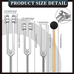 Multi-Frequency Set: Includes 128 Hz, 256 Hz, and 512 Hz forks for versatile sound therapy applications.